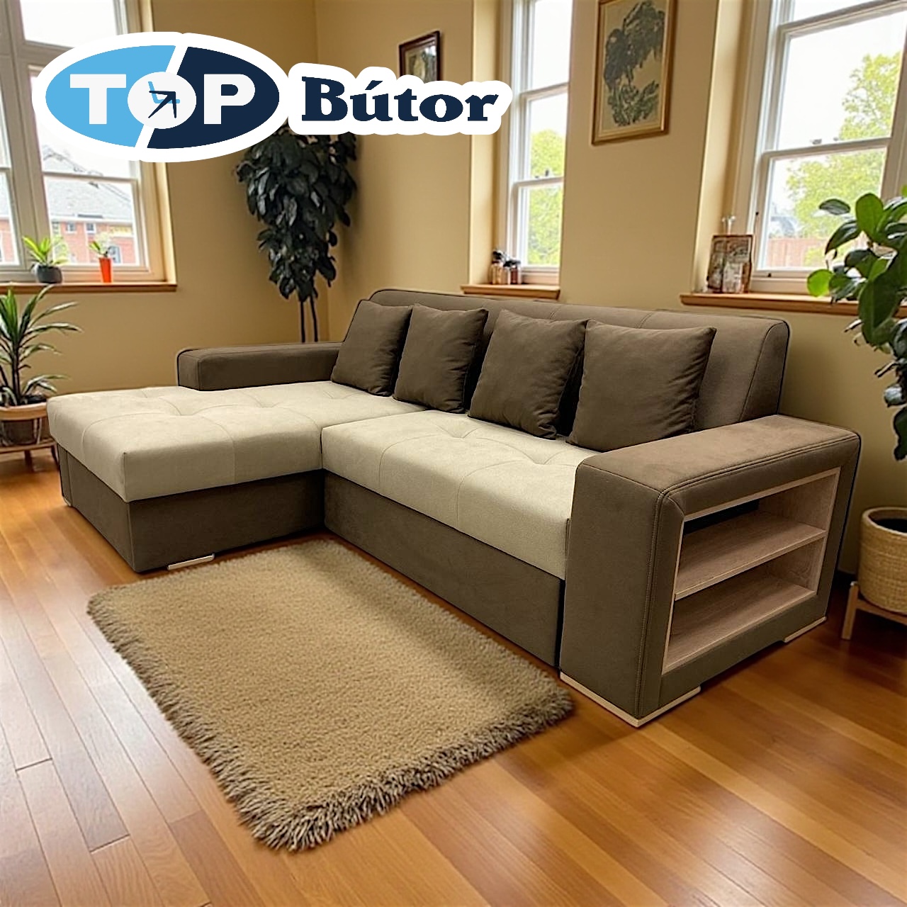 Engedd meg, hogy bemutassuk otthonod új központi ékkövét – a Milánó Sarokkanapét. Egy bútordarab, amely nemcsak kényelmes ülőhely, hanem stílusos tároló is: a karfába rejtett elegáns polc tökéletes helyet biztosít kedvenc könyveidnek, magazinjaidnak vagy akár egy pohár bornak egy hosszú nap végén.